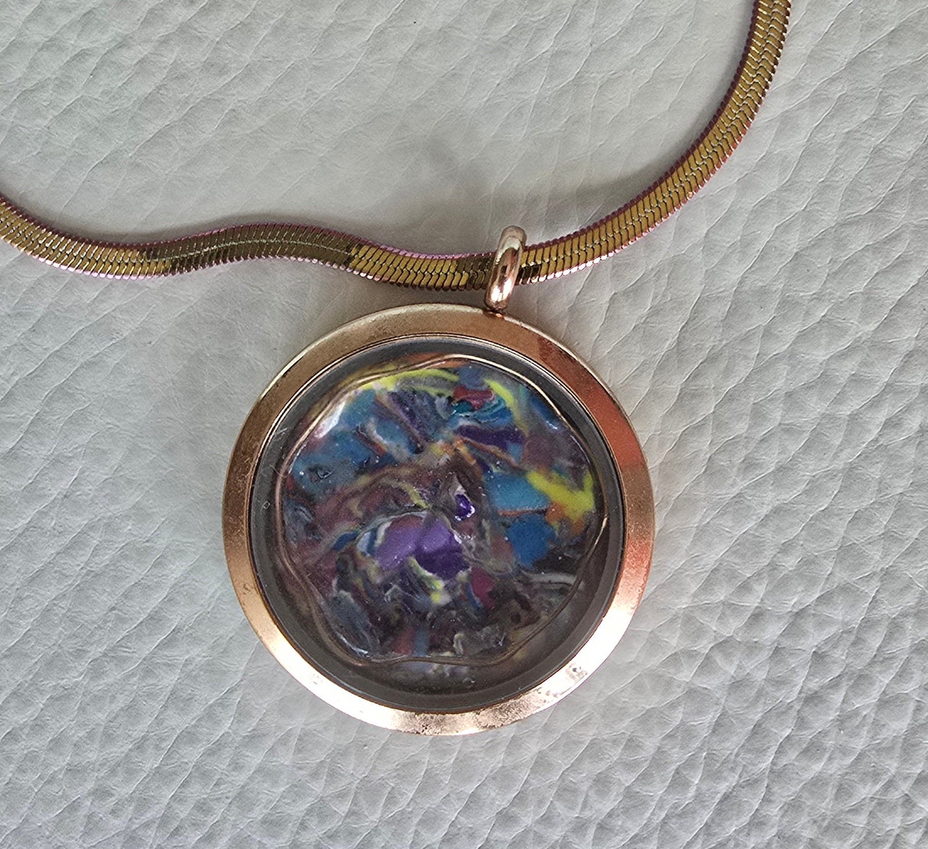 Colored Charm with a mini clay painting by Golden Fin.