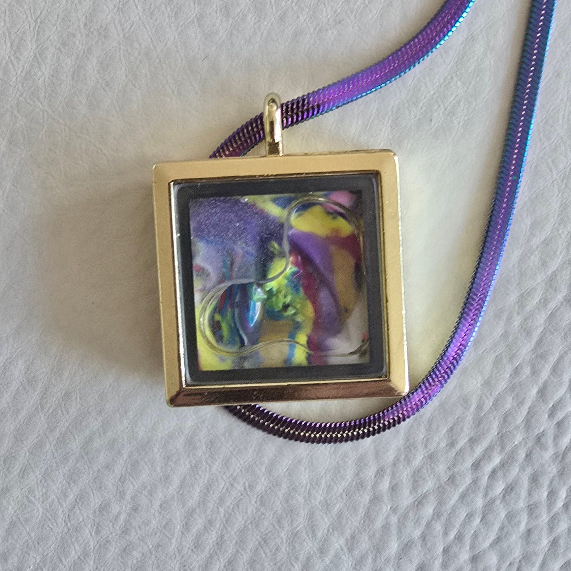 Colored Charm with a mini clay painting by Golden Fin.