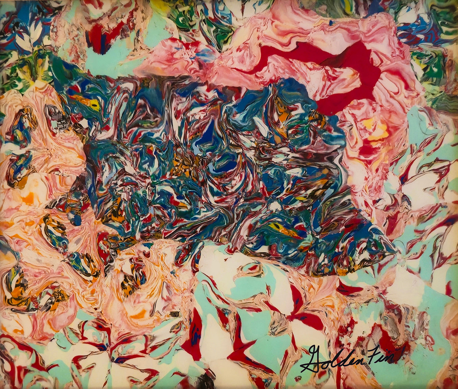 Soft pastels collide with deep marbled blues in this fluid, atmospheric work. Shapes ripple like coral and tide pools, blending into each other with dreamlike transitions. Ray #2 feels like a memory of water—dissolving, reshaping, and endlessly alive.